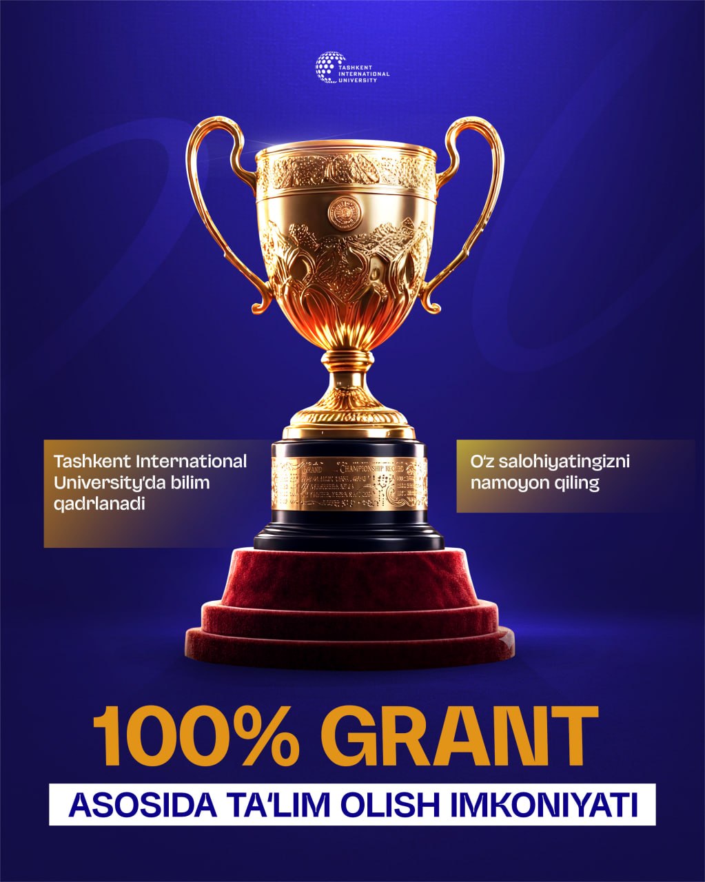 Tashkent International University 2026/2027-o‘quv yili uchun qabul jarayonlari davom etayotganini e’lon qiladi. Abituriyentlar uchun keng imkoniyatlar, jumladan grant asosida ta’lim olish imkoniyati ham taqdim etiladi.